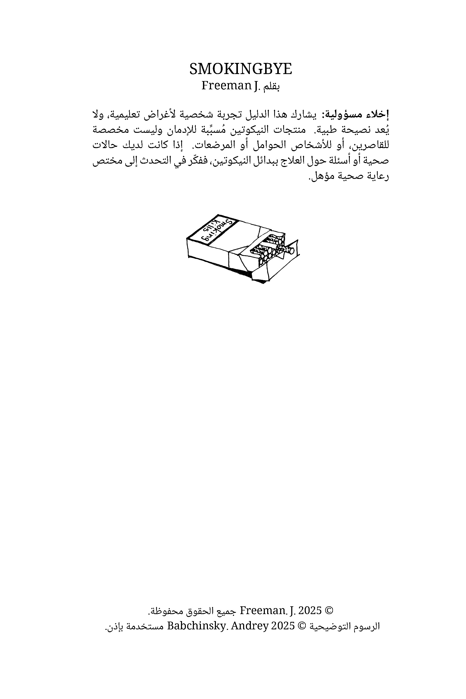 SmokingBye هو دليل PDF قصير ومنظم مخصص للبالغين من المدخنين ومستخدمي النيكوتين الذين يرغبون في الإقلاع دون توتر أو ضغط أو الاعتماد على قوة الإرادة وحدها — من خلال نهج هادئ يعتمد على التقليل التدريجي (وليس “الإقلاع المفاجئ”).