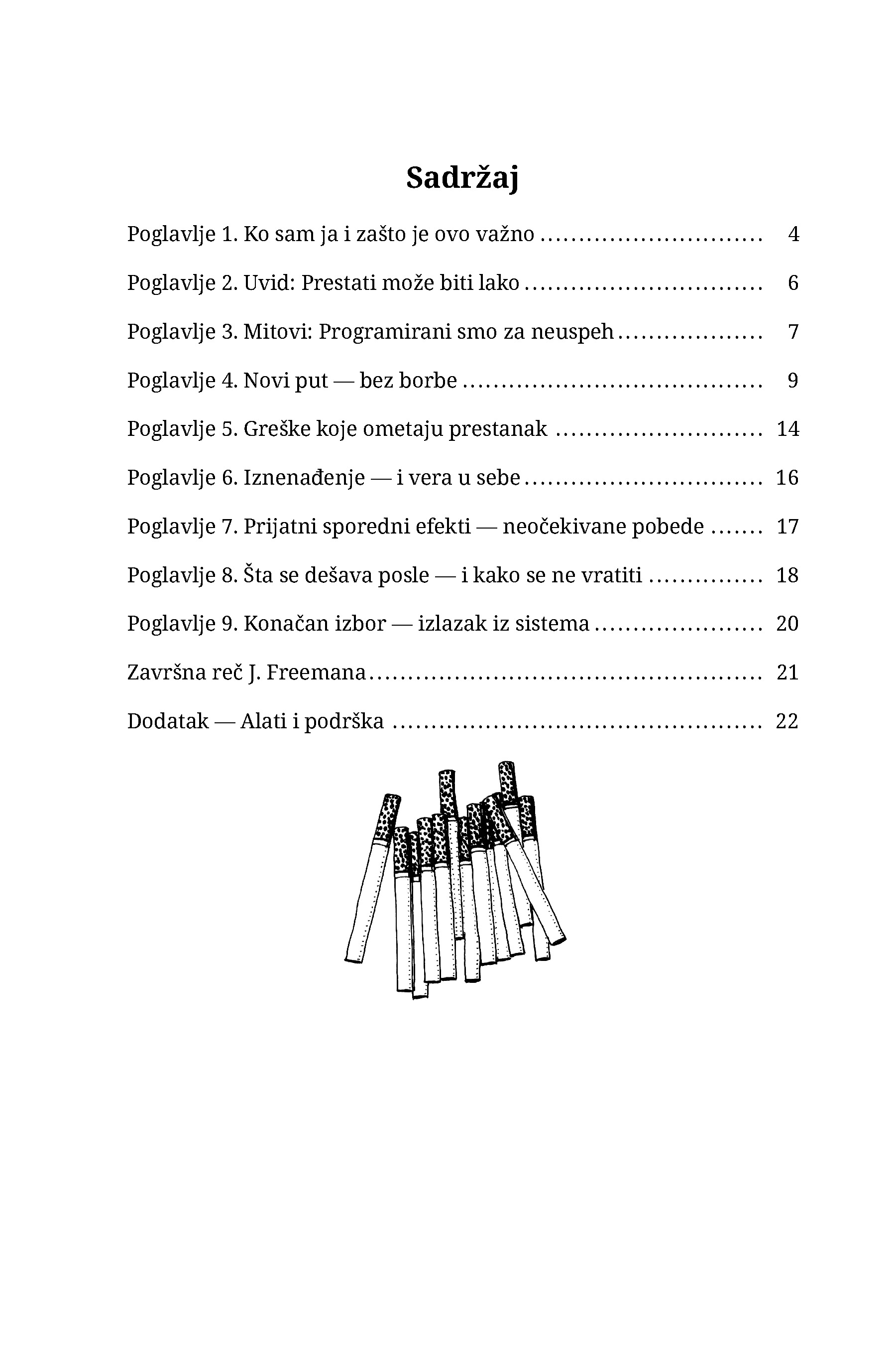 SmokingBye je kratak, strukturisan PDF vodič za odrasle pušače i korisnike nikotina koji žele da prestanu bez stresa, pritiska ili oslanjanja na „heroisku“ snagu volje — koristeći smiren pristup postepenog smanjenja (a ne nagli prekid).